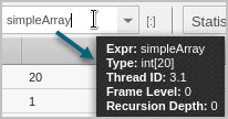 The Array Expression dropdown. When you have added multiple arrays to the view, you can use this dropdown to select the array that you want to examine. When you point to an array name in the dropdown, a tooltip displays information about the array.