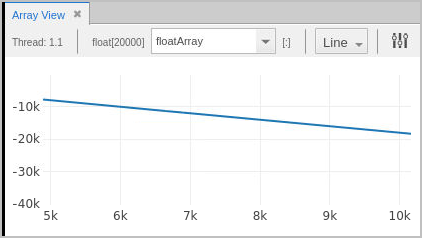 The following image shows a 20,000-element, single-dimensional array. To see just the values from 5,000 to 10,000, select the slice by clicking at the starting point of the range and then dragging to the end range.