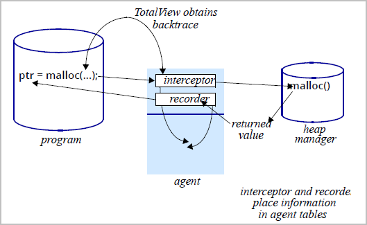 TotalView intercepts calls made by your program to heap library functions that allocate and deallocate memory by using the malloc() and free() functions and related functions such as calloc() and realloc(). The technique it uses is called interposition. TotalView’s interposition technology uses an agent routine to intercept calls to functions in this library. This agent routine is sometimes called the Heap Interposition Agent (HIA).
