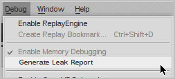 Select Debug > Generate Leak Report.