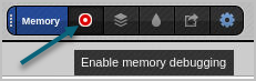 From the memory toolbar, by selecting the Enable memory debugging icon: