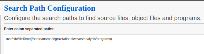 This view is also editable, allowing you to add, remove, or reorder paths as you would on the command line. Notice that the path specified for recursive search is enclosed in the $tree() function, which automatically adds the paths below the specified root.
