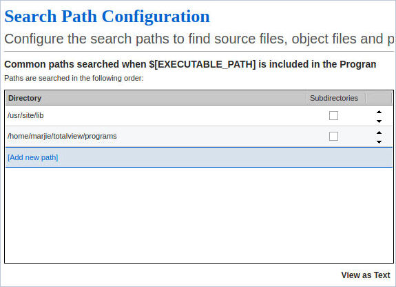 The View as Text button shows you the EXECUTABLE_PATH variable as it would appear in the command line interface.