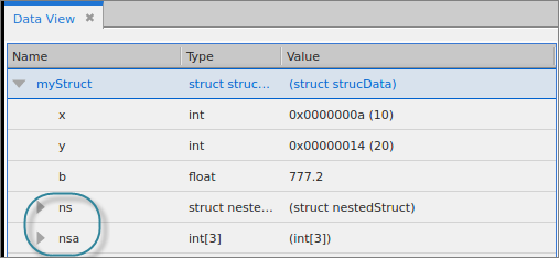 If your complex variable has nested structures, these display in the Data View: